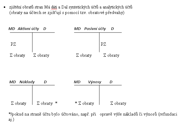 Zjištění obratů stran Má dáti a Dal účtů (obraty na účtech se zjišťují s pomocí tzv. obratové předvahy)
