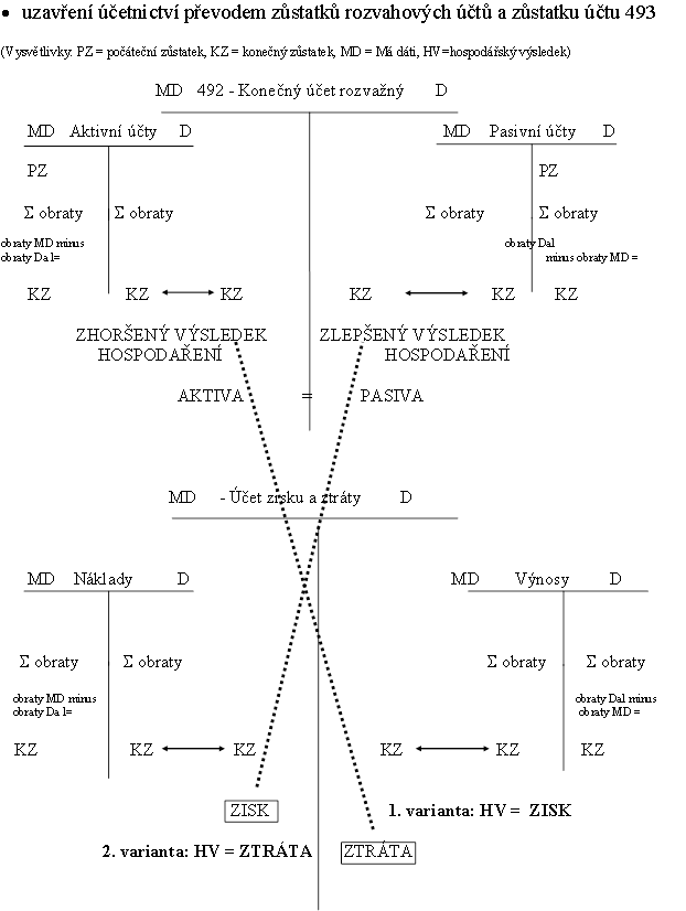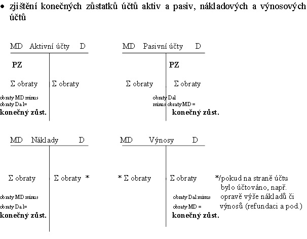 konečné zůstatky účtů aktiv a pasiv = počáteční stavy účtů aktiv a pasiv